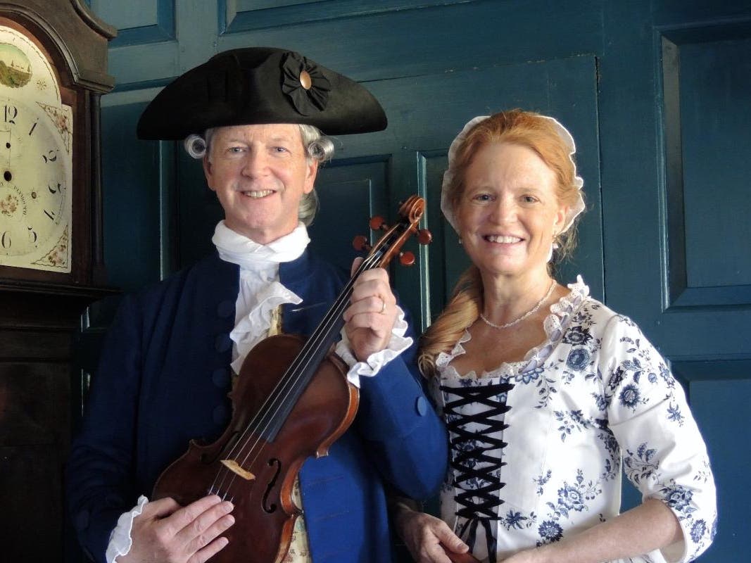 The Enslows, who have appeared at the Farmstead on several previous occasions, will wear period dress and play instruments that are appropriate to the colonial period. Ridley plays an 18th-century violin built in France in 1776, and Anne is a master of the hammered dulcimer, a trapezoidal instrument with nearly 100 strings that are struck with little wooden hammers.