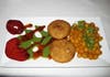 The Aloo Dal Tikki, our second appetizer, was composed of spiced chick peas along side a mashed potato cake. It was a bit on the 'hot' side and I would have loved some cool refreshing raita (yogurt with cucumber, onions and tomatoes) to go with it. I will remember that for next time.
