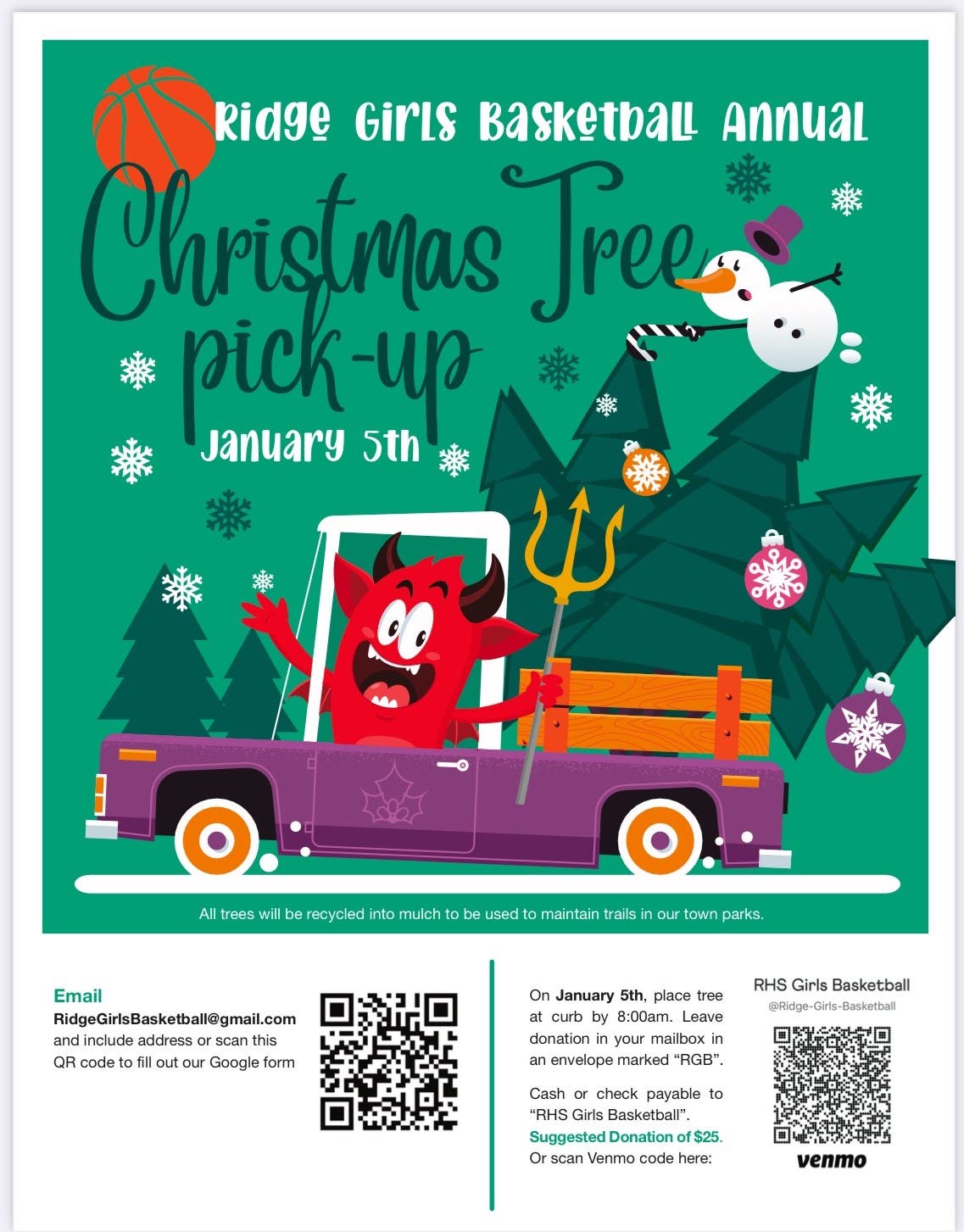 Ridge Girls Basketball Offer Christmas Tree Pick-Up & Reycling