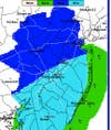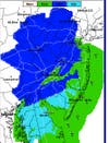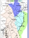 The National Weather Service is displaying a map (see with story) that shows New Jersey on Saturday at 7 p.m., with snow hitting Monmouth County and north, and a winter mix hitting South Jersey, the Shore and eastern Pennsylvania.