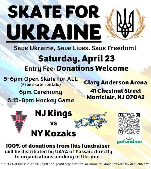 They decided to host the "Skate For Ukraine" event on Saturday at the Clary Anderson Arena, 41 Chestnut Street, Montclair.