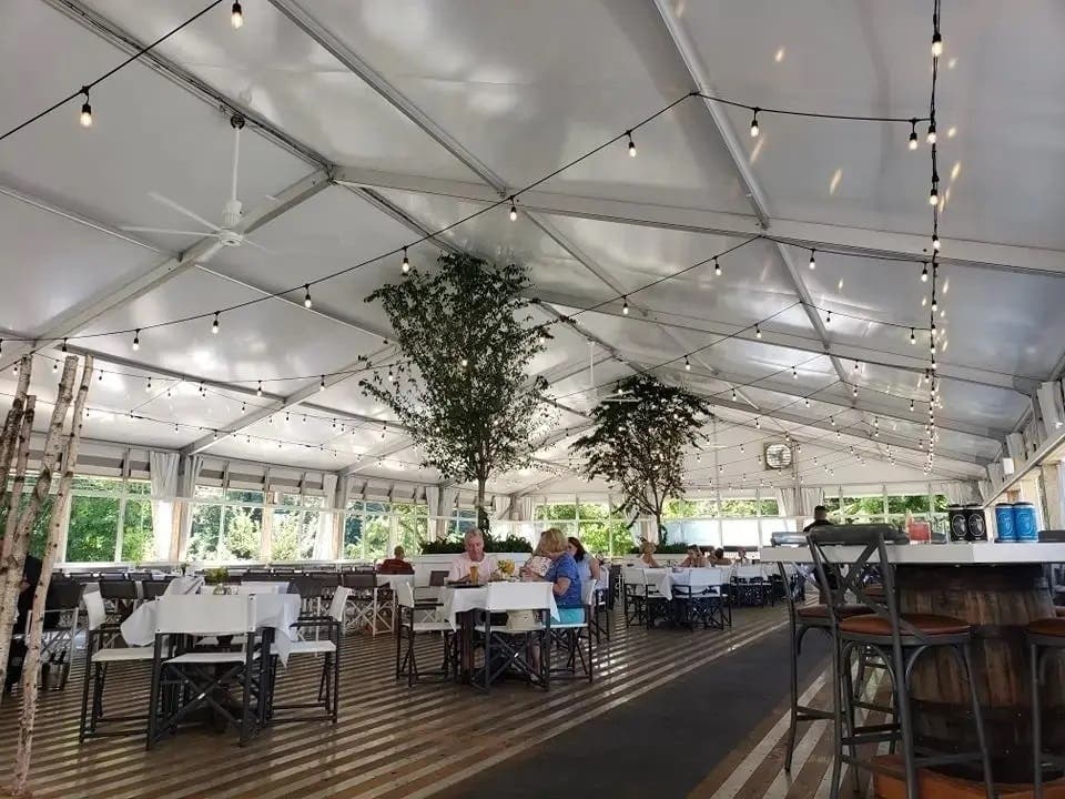 The tent is the latest addition to the restaurant's lavish outdoor dining area. It comes with radiant flooring, a luxury bathroom, overhead lighting, ventilation, and trees for the atmosphere.