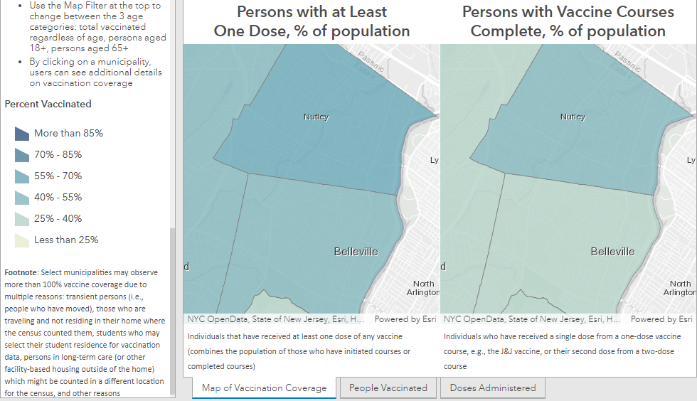 ESSEX COUNTY, NJ — How many people have gotten a COVID-19 vaccine in Belleville and Nutley? (See local statistics below)