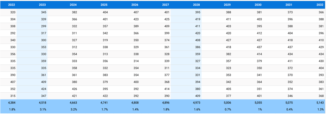 Currently, the district has 4,518 students. That number is expected to increase to 5,143 in 2032.
