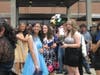 Outside on the school grounds, the celebration continued with proud families and friends cheering on the class and handing them flowers, balloons and gifts.
