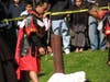 Parishioners spoke in both English and Spanish about the meaning of Catholic Holy Week, with many dropping to their knees during the Stations in front of the church.