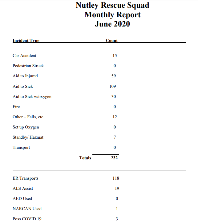 “Commissioner Petracco's attempt to dismantle Nutley's Volunteer EMS comes at a time when we are operating more efficiently and more effectively than ever. We recently made significant investments into our squad, upgrading our fleet of emergency vehicles and purchasing new equipment and PPE to ensure that we can maintain a high level of service to the residents of Nutley. As the COVID-19 pandemic swept across our community earlier this year, NVERS was ready, and led the charge of first responders to keep our community safe.