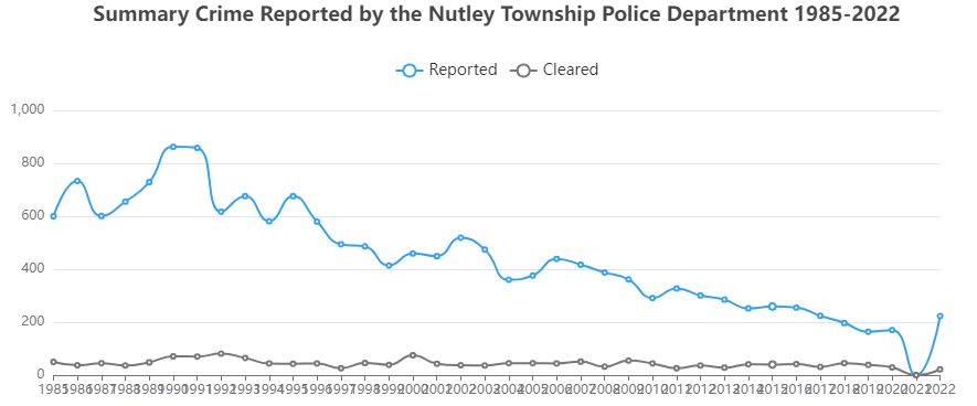 Recent FBI statistics show that Nutley saw a slight increase in property crimes in 2022 (a total of 223) from levels seen in 2019 (164 reported crimes) and 2020 (170 reported crimes).