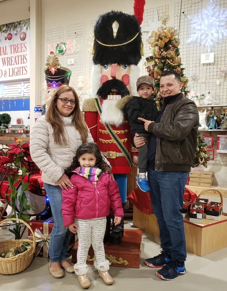 Photo: The Moreno Family of Belleville, mom Maria with Isabella and dad Gerard with Leon visit the "world's largest nutcracker" at State Fair Christmas store in Belleville. (Michael Perrone)