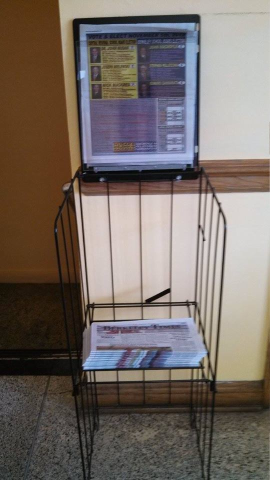 The picture displayed was in Berkeley Township’s Recreation Center, next to the town employee who paid for the advertisement as treasurer for this "Non-Partisan" election. This picture was taken right outside of Mrs. Kowalewski's office door.