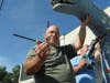 Berkeley Township Citizens Facebook page administrator Steve Baeli, Township Councilman James J. Byrnes,Mayor Carmen F. Amato Jr. and another volunteer gathered at Dino’s perch in front of a defunct paint store on Route 9 South to perform the surgery.
