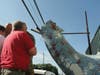 Dino the Dinosaur, a Bayville landmark, underwent surgery without anesthesia Wednesday morning.