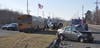 The school bus, which did not have children on it at the time, and the pickup truck ended up in the median, Stocco said.