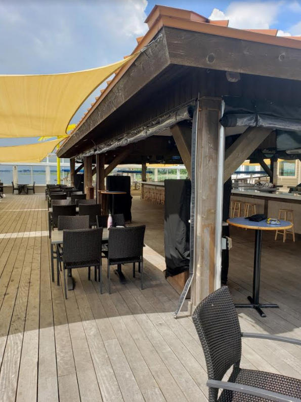 Gov. Phil Murphy and Tammy Murphy ate at the outdoor, roofed tiki deck in Martell's Waters Edge, the restaurant manager says.