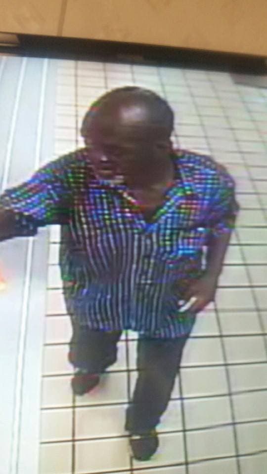 The suspect a black male, age 50-60, 5’7”, with a gray beard, and shaved head. He was wearing a short-sleeved, collared shirt.