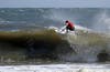 32 of New Jersey's most elite surfers took to the ocean off Casino Pier in Seaside Heights this morning to vie for the contest's championship belt. A limited number of spectators are in attendance, some gathered on the boardwalk, others watching from four-wheel drive vehicles driven onto the sand.