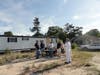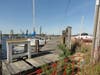 The trailers, a house on the north side of the property and the battered marina offices have been boarded up since last week. Orange see-thru plastic fencing lines the perimeters of the badly warped docks.