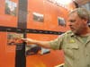 The interactive display features a chronological pictorial timeline of the fire. Press a button and you can hear the fire burning. Smoke seeps from underneath the display. If you suddenly feel a little hot, that's because there's a heater above the display.