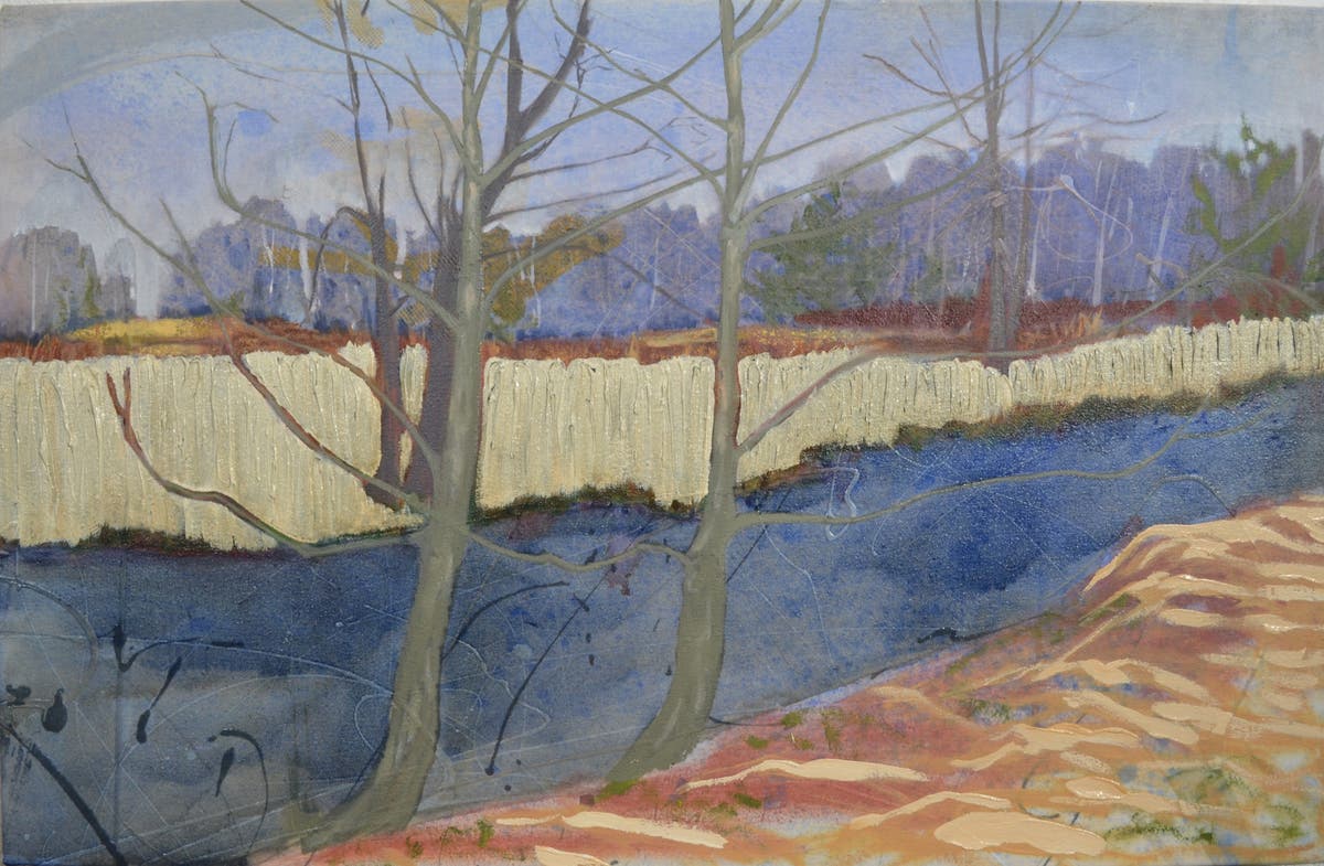 Ms. Fraser is an emerging artist. While she has always been skilled and trained in art, she has only been painting and showing her work consistently since 2014. Most of her work is en plein air. She says the process of packing her giant backpack and wandering through the New Jersey countryside allows her "to connect with the earth and find that moment I want to share in a painting. When working outdoors, I put information onto the canvas that allows me to begin playing with the paint process. Since preserving the environment is so important to me, I create 'canvases' with an eye toward upcycling materials and limiting waste. I often use upcycled fabric, plastic bags, vinyl and screens."