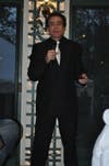 The evening began with “Don Loprano,” dressed in a black suit, black glasses and a white tie, greeting the crowd on the porch of the mansion at about a quarter to 7. He said the mansion was still being swept for “bugs.” He even checked under one woman’s elaborate hat for a wire, speaking into it, “I pay my taxes and I love the police.”