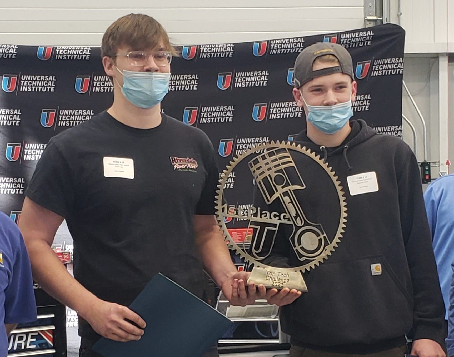 Students Ryan McVeigh and James Lee received a winning team trophy on behalf of Wayne Valley High School, in Wayne, New Jersey, by demonstrating know-how, technical skill, and expertise and in all competitive areas. Both can now to advance their skill sets by investing up to $50,000 in scholarships, depending on their chosen field of study, at any one of Universal Technical Institute’s 12 campuses nationwide.