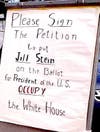 A flyer being given to people who signed the petition articulates some of the issues that Dr. Stein in raising in her campaign: