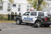 Witnesses said the impact caused the police SUV to flip over and then upright itself. The other two cars involved were a gold Toyota Camry and red Buick Lacrosse, which had its driverside airbag deployed.