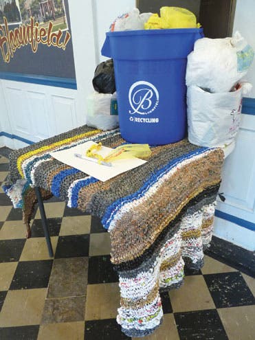 Since October, organizations such as the Bloomfield Parks, Recreation and Cultural Affairs Department, Bloomfield Public Library and the Recycling Committee have been leading classes for volunteers, teaching them how to weave and stitch the mats from their unassuming components.