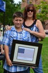 Accepting a certificate on behalf of Daniel Rosetti was his son, Justin, 11, a sixth grader at Oakview School. A member of the Alviar family accepted on behalf of Cesar Alviar.
