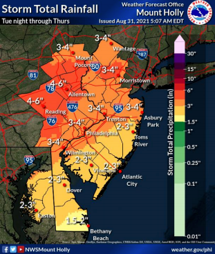 As northeast New Jersey expects 3 to 5 inches of rainfall, here are projected totals for the rest of the state: