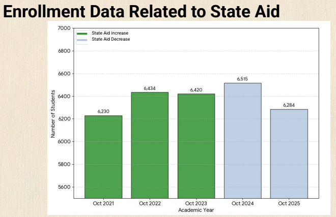 According to figures presented at Tuesday’s meeting, the district is facing about $10.4 million in cost increases, including $5 million for health benefits and $4 million for contractual increases.