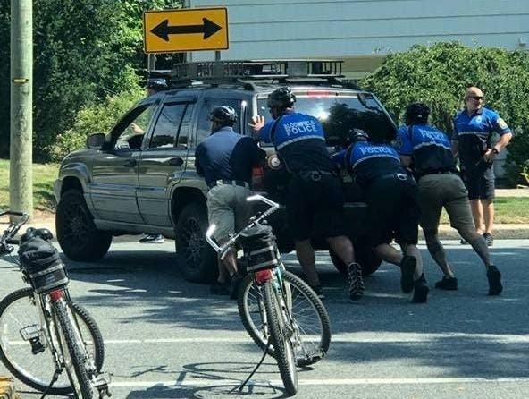 Woman’s Car Breaks Down, Bloomfield Bike Cops Give Her A Push