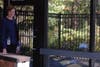 It is a pretty setting, with yellow and blue carpet squares marking the spot. They were bathed in sunlight streaming through the glass walls in the afternoon, making you want to sit down and enjoy a good story. Nearby, a door on the back wall opened out into an area that evokes the children's book, "The Secret Garden," with a wrought-iron fence surrounding a small patio that's framed by trees and the woods behind it. A spongy outdoor tile covers the surface, making it an inviting place for youngsters to sit and listen to stories on a pleasant day.