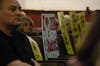 (Bus drivers and their supporters express their sentiments with signs at the May 28 Brick Board of Education meeting. Gregory Cohen, the local TWU representative, says the board was given bad information. Credits: Karen Wall)