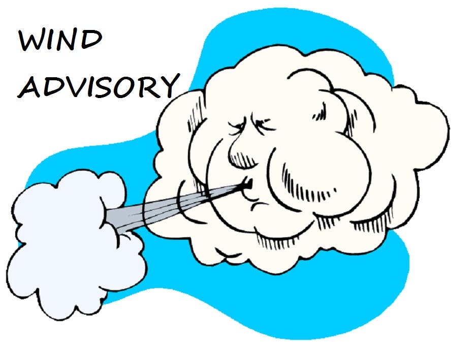 The advisory, in effect from 8 p.m. until 1 a.m., is calling for winds from the west at 20 to 30 mph with gusts up to 50 mph. that could make travel difficult, especially for vehicles with high profiles.