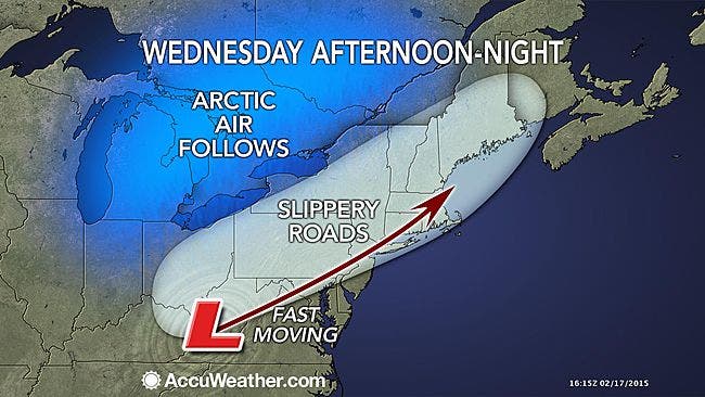 A new push of frigid air will trigger the next round of precipitation across the Northeast in the form of intermittent snow and snow showers Wednesday afternoon and evening, according to Accuweather.