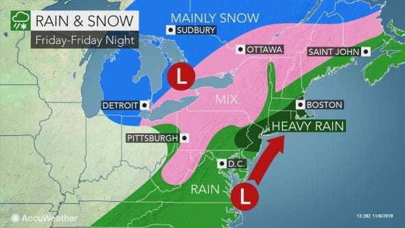 And, yes, some snow could even fall in Sussex County, mixing with the rain that's supposed to dump 1 to 2 inches across New Jersey. Thunderstorms and flooding are expected at the Jersey Shore.