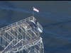 State police and local authorities worked to get the man off the wreckage.