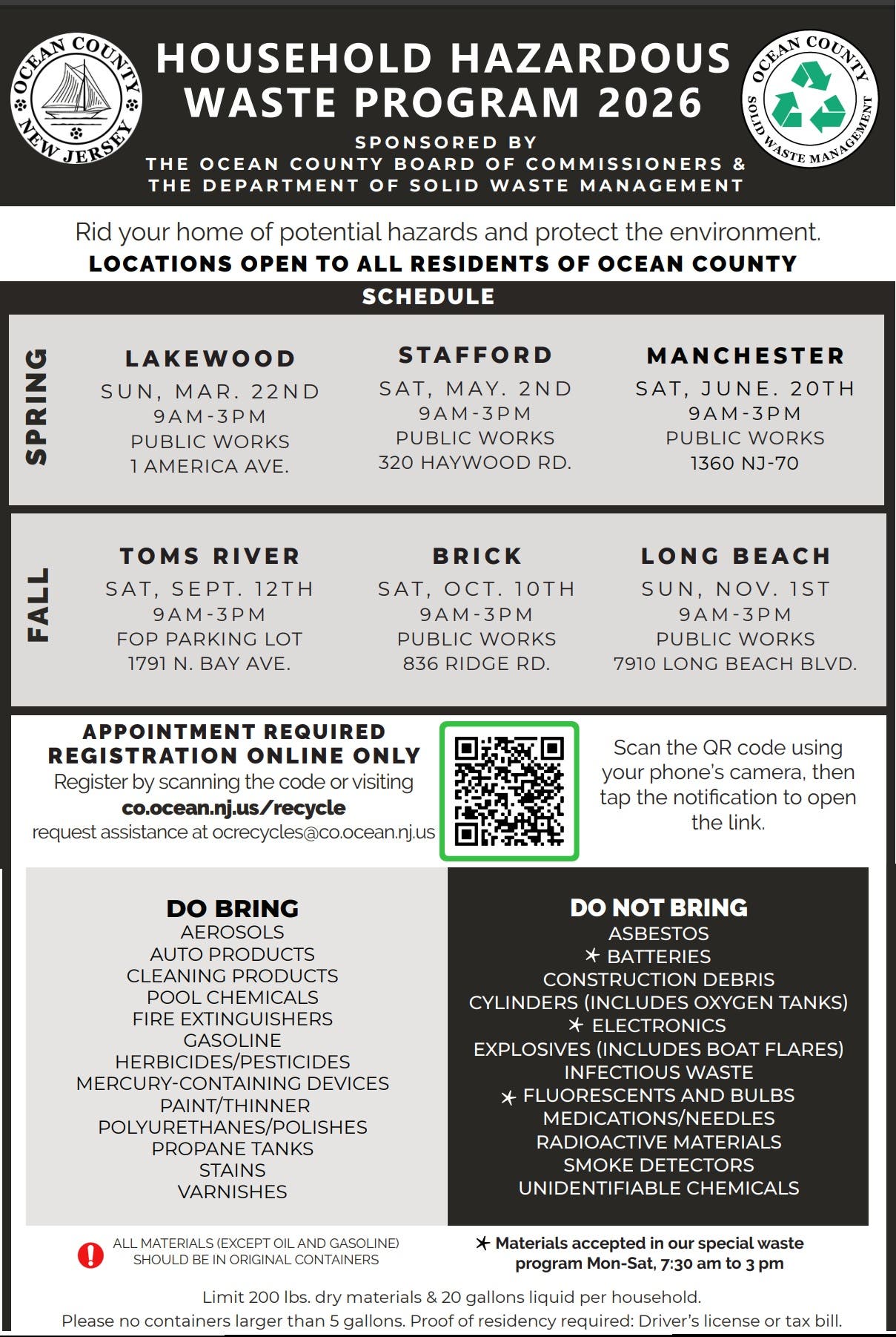 The program is open to all Ocean County residents and you can go to any of the six dates — you are not required to live in the town hosting the collection.