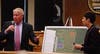 (Mayor John Ducey and Councilwoman Andrea Zapcic present the artist‘s rendering of Colorado Park. Angela Hibberd Park and Lake Riviera Park also where displayed at the council meeting. Credit: Karen Wall)