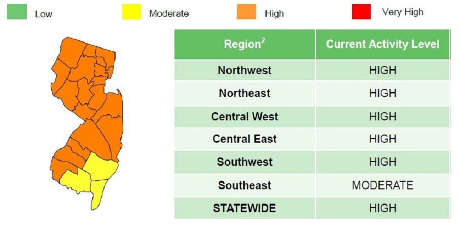 The disease's impact is reflected in the state Department of Health's most recent "COVID-19 Activity Level Report," which is issued weekly. The most recent report, released Thursday, says Ocean County remains in the orange zone.