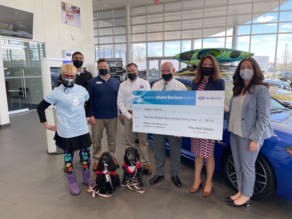 “Here at Subaru, we recognize the importance pets play in the health and wellness of our customers and their families, which is why we could not resist choosing Caregiver Canines as one of our Home Charities for our Share the Love Event.” said Ryan Concord, General Manager of Pine Belt Subaru in Lakewood. Megan O’Keefe, Executive Director of Caregiver Volunteers added, “This program brings the joy of pet ownership to so many in the community, we are so grateful for the support of Pine Belt Subaru that makes this program possible.”