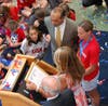 Rampone received the red carpet treatment from Meridian Health (she is the spokesperson for their K. Hovnanian Children’s Hospital), complete with balloons, confetti and special guests, including Acting Governor Kim Guadagno, Monmouth University athletic director Marilyn McNeil, New York GIants Hall of Famer Harry Carson, and Judy Goldstein, who had been Rampone’s coach way back in elementary school.