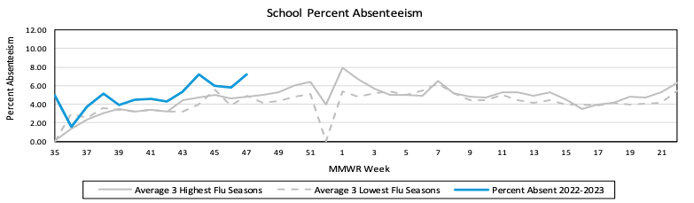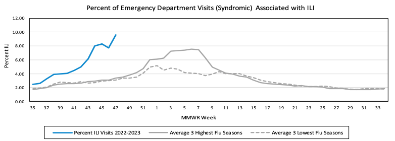 Additionally, every region of the state has "high" flu activity, according to the state health department's latest weekly report. Influenza-like illness accounted for nearly 10 percent of New Jersey's emergency-room visits in December, more than doubling the average rate of the state's three worst flu seasons in the past decade. And New Jersey's school absenteeism is on pace to surpass figures from flu seasons in the past 10 years.