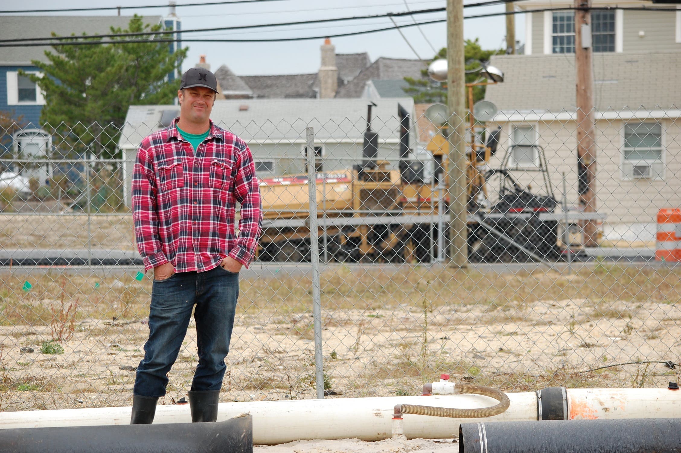 (Nick Honachefsky stands in front of the area where his home in Normandy Beach once stood, in 2014. A year later, little has changed. Credit: Karen Wall)