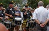 The sounds of bagpipes and drums filled the air, sounding out the anthems of the U.S. Marine Corps, the Army, the Navy and the Air Force. A U.S. flag waved in the breeze high above the crowd from the top of the Ocean Beach Fire Company’s ladder truck, as veterans -- from World War II to Afghanistan -- stood at attention, surrounded by dozens of spectators old and young.