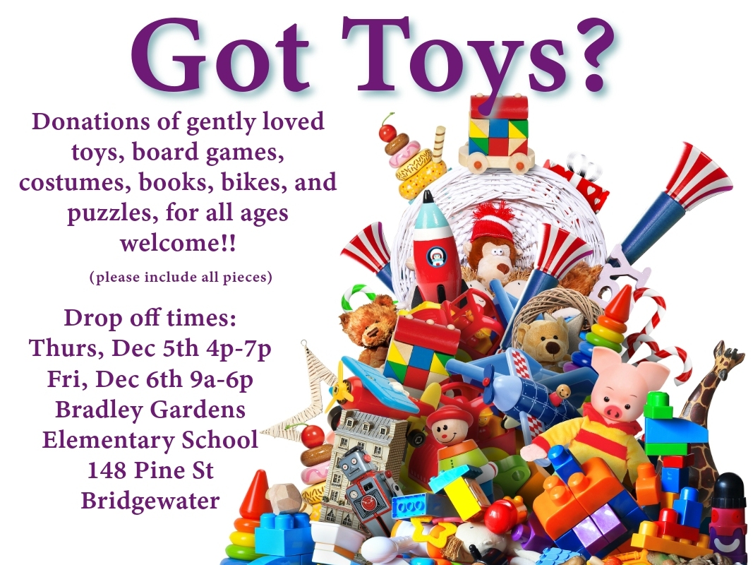 Drop off your donations at Bradley Gardens School, 148 Pine St. in Bridgewater: