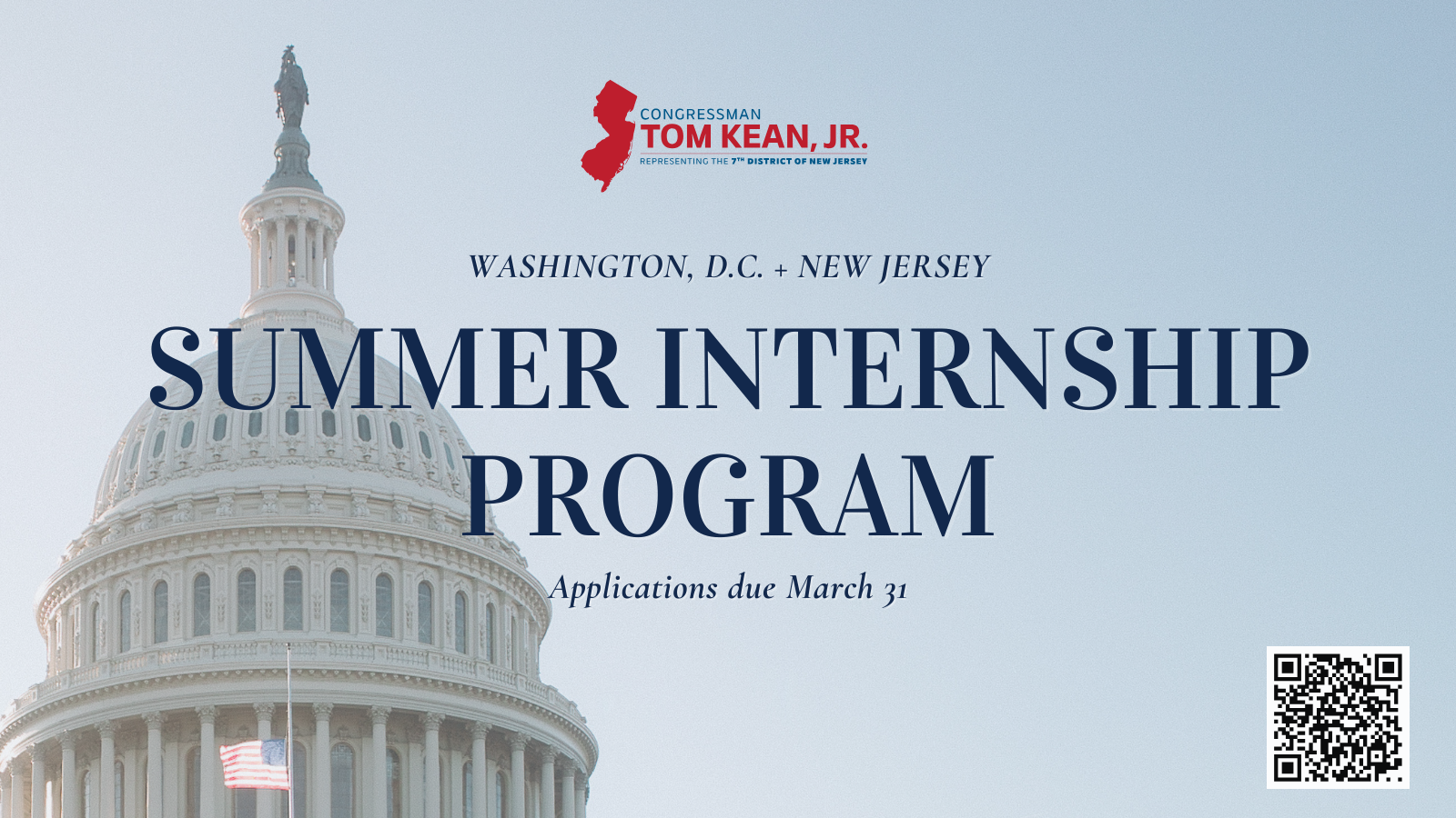 Congressman Tom Kean, Jr. (NJ-07) announced that his offices in Washington, D.C. and Lebanon Borough are accepting applications for the Summer 2026 Internship Program.