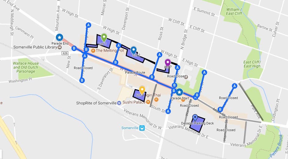 The parade will be held on March 12 at 1:30 p.m. and will run along Main Street in Somerville. The parade will begin on Main Street across from the Somerset County Courthouse and continue along Route 28, W Main Street up to West End Avenue where it will end at the corner of West End Avenue and Mountain Avenue.