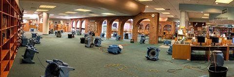 "Water literally shot up through the floor clean-out access point with several inches of rain water spreading rapidly across the adult area of the branch," stated SCLSNJ Library Administrator Brian Auger on Facebook. "Quick thinking staff and helpful customers moved computers, unplugged power strips and moved furniture away from the racing tide. The remediation experts are applying fungicide and antibacterial treatments to the carpets as they dry and will be inspecting the electrical boxes."